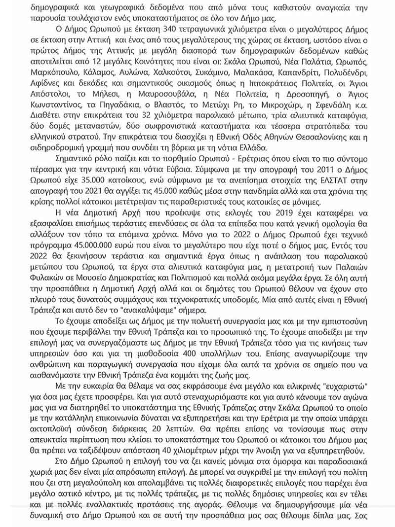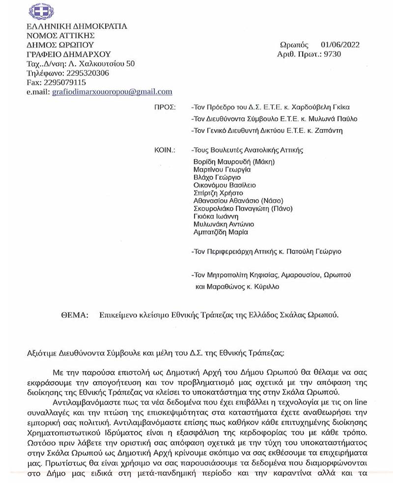 PREVIOUS Previous post: Να μην κλείσει το κατάστημα της Εθνικής Τράπεζας στην Σκάλα Ωρωπού