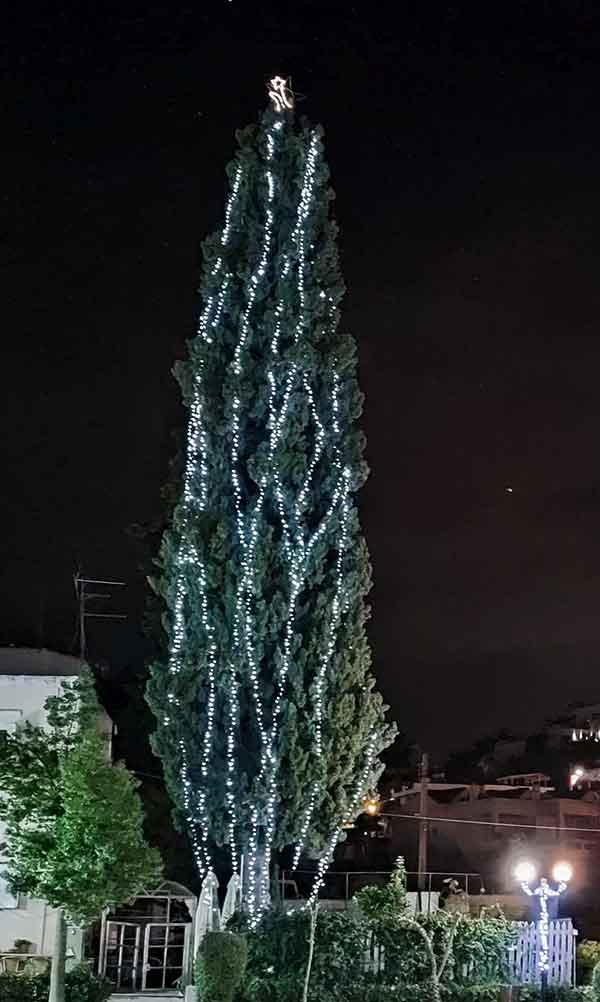 Τα γιορτινά του φόρεσε και το Μαρκόπουλο του Δήμου Ωρωπού. Σε μία όμορφη και ζεστή εκδήλωση που έγινε στην πλατεία του χωριού ο δήμαρχος Ωρωπού Γιώργος Γιασημάκης και ο αντιδήμαρχος Μαρκοπούλου Γιώργος Αρμυριώτης έστειλαν το Χριστουγεννιάτικο μήνυμα προς όλους τους πολίτες του τόπου και μέτρησαν αντίστροφα για το άναμμα των φώτων στο εμβληματικό και τεράστιο κυπαρίσσι που βρίσκεται στην πλατεία του χωριού.