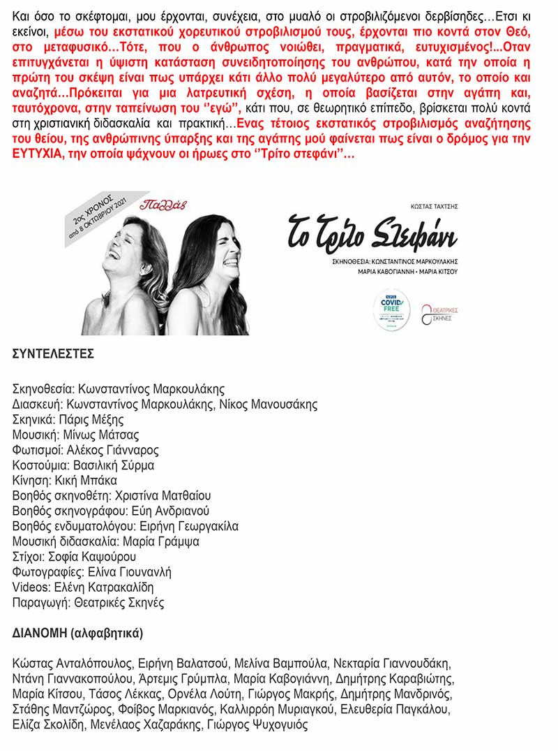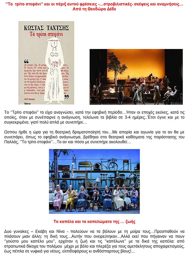 ΘέατροΘεοδώρα ΔέδεΡοή ΝέωνΤελευταία Νέα “Το τρίτο στεφάνι” και οι πέριξ αυτού φρέσκιες -…στροβιλιστικές- σκέψεις και αναμνήσεις… Σοφία Μπασκάκη 4 Δεκεμβρίου, 2021