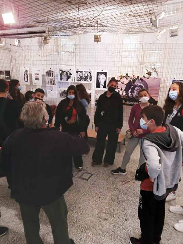 Ενημερώθηκαν από τον Χριστόφορο Κούτσουρη για την ιστορία του χώρου, ξεναγήθηκαν στο κελί που φυλακίστηκε ο Μίκης Θεοδωράκης και άλλοι αγωνιστές της δημοκρατίας την περίοδο της χούντας και έμαθαν την ιστορία του τόπου που σύντομα θα μετατραπεί σε χώρο Πολιτισμού και Δημοκρατίας “Μίκης Θεοδωράκης”.