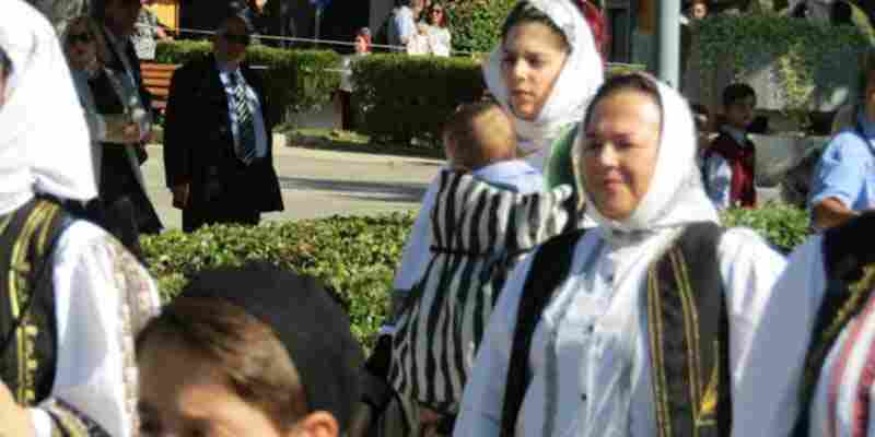 Η νεαρή γυναίκα εντυπωσίασε στην παρέλαση αγέρωχη με την τοπική φορεσιά και τον μάρσιπο κρατώντας αγκαλιά το μόλις λίγων μηνών μωρό, όπως φαίνεται και στις φωτογραφίες.