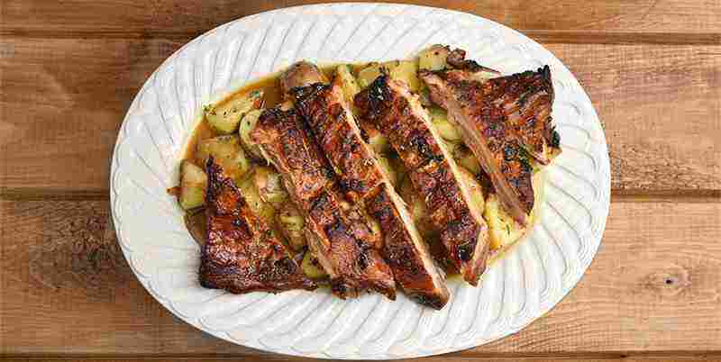 - Μεταφέρουμε την πανσέτα και τις πατάτες σε μία πιατέλα.