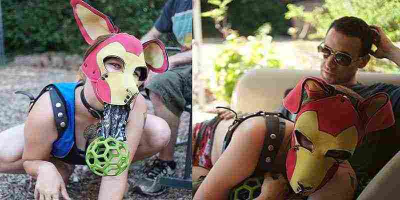 Tony McGinn in dressed in his puppy outfit during a pet play session in Los Angeles