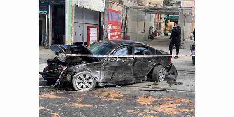 Η εικόνα στην περιοχή θυμίζει στην κυριολεξία βομβαρδισμένο τοπίο ενώ η εικόνα του κλεμμένου ΙΧ δείχνει την σφοδρότητα της σύγκρουσης.