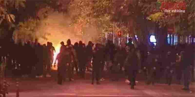 Οι άγνωστοι, οι οποίοι είναι περίπου 300 με 400 άτομα, πετούν βόμβες μολότοφ στην οδό Στουρνάρη στις αστυνομικές δυνάμεις, οι οποίες επιχείρησαν να αντεπιτεθούν, με τους κουκουλοφόρους να επιστρέφουν στην πλατεία Εξαρχείων.