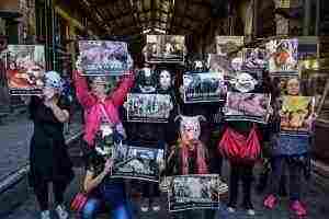 Χορτοφάγοι με μάσκες αρνιών και γουρουνιών έκαναν «ντου» στη Βαρβάκειο αγορά
