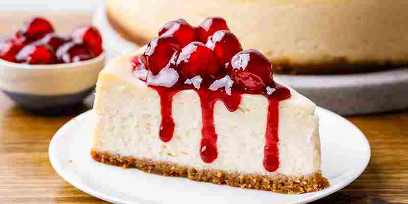 Κόβετε το cheesecake σε τριγωνικά κομμάτια γαρνίρετε με το βύσσινο  και σερβίρετε.