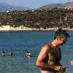 Νεαρή γυναίκα σκάρτα 30 φοράει ένα μικροσκοπικό φουστανάκι και προσκυνάει την Παναγία. Ακολουθεί την διαδικασία ανεβαίνοντας στην Εκκλησία με τον γνωστό τρόπο.
