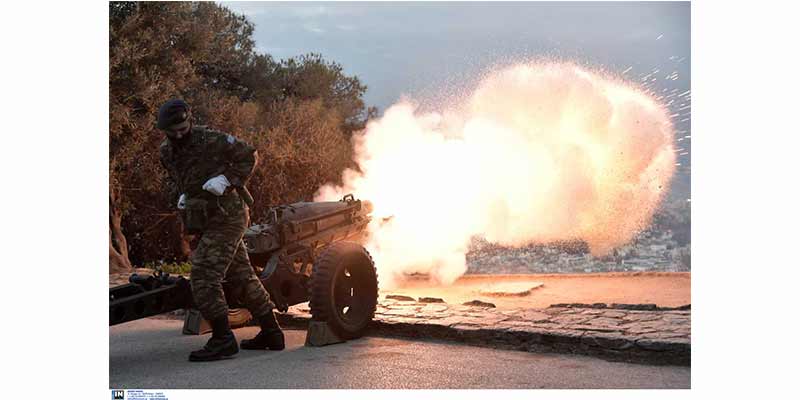 Γύρω στις 06:20 ξεκίνησαν οι εορτασμοί για τα 200 χρόνια της Ελληνικής Επανάστασης του 1821, με τους 21 χαιρετιστήριους κανονιοβολισμούς από τον Λυκαβηττό.