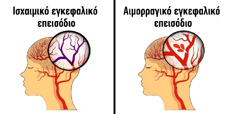 Αιμορραγικό εγκεφαλικό επεισόδιο: η αιτία αυτού του εγκεφαλικού είναι η ρήξη των εγκεφαλικών αγγείων, η οποία προκαλεί οίδημα και πίεση.